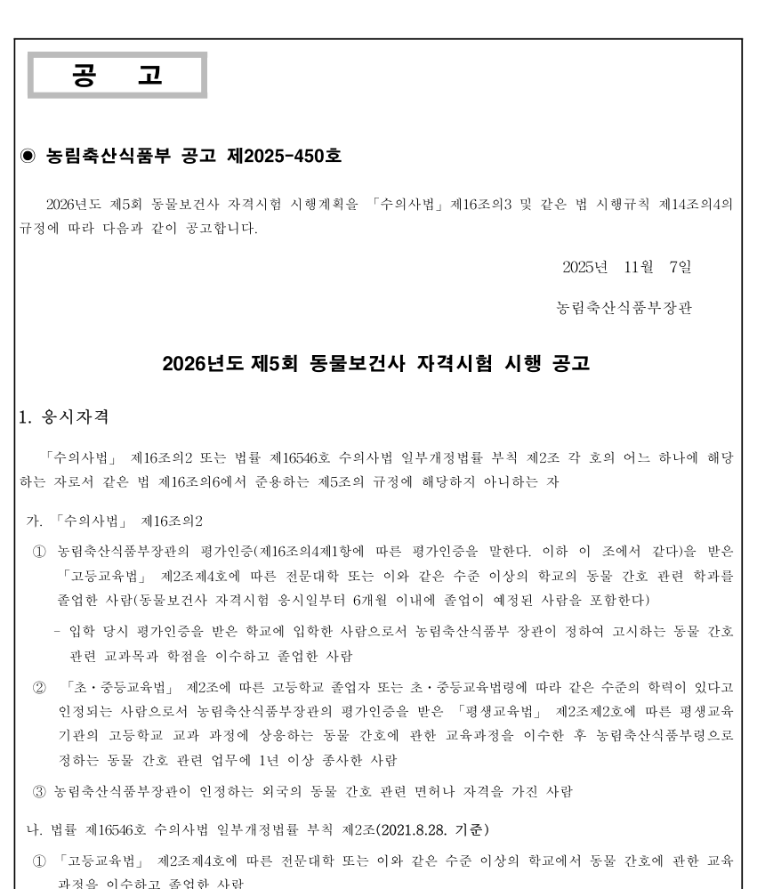 2026년도제5회동물보건사자격시험공고(제2025-450호).pdf